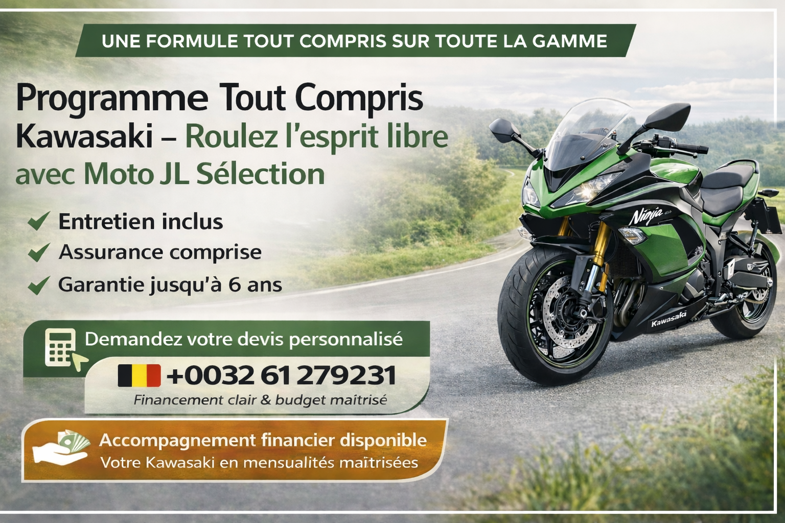 🟢 Programme Tout Compris Kawasaki – Roulez l’esprit libre avec Moto JL Sélection